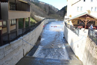 İlçemizde akan Derelerimizin aşırı yağışlar sonucunda meydana gelen su taşkınlara önlem almak amacıyla DSİ tarafından başlatılan dere ıslah çalışmaları devam ediyor.