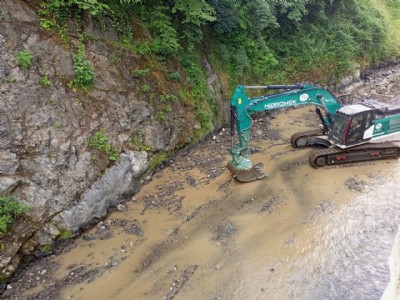 Şalpazarı Belediyesi Başkanı Refik Kurukız, Fen İşleri Müdürü Fazlı Demirtürk ile birlikte, DSİ Trabzon Bölge Müdürlüğü işbirliğinde yürütülen dere ıslah çalışmaları hakkında Ağasar Deresi’nde yapılan çalışmalar hakkında bilgilendirmelerde bulundu.