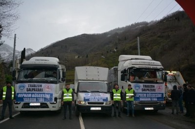 Deprem Bölgesine ulaştırmak için 3 Adet Yardım Tırlarımızı dualarla gönderdik.
