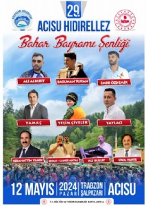 ŞalpazarıAcısu mevkisindeki şenlikte çoğunluğu yöresel kıyafetler giyen yurttaşlar güzel görüntüler oluşturdu. Yöresel sanatçılar kemençe eşliğinde türküler söyledi, horonlar tepildi.Bazı vatandaşların Ağasar Deresi kenarında ailece piknik yaptı.Şalpazarı Belediye Başkanımız Sayın Refik Kurukız da etkinlikte bir konuşma yaptı.Kurukız, Hıdırellez'in Orta Asya'dan bugüne kadar kıyafet, gelenek ve göreneklerde yer alan bir kültür parçası olduğunu söyledi.Kurukız, insanların birlik ve beraberliğini devam ettirebilmesi için etkinliği düzenlediklerine işaret etti.Kurukız, "Bizim amacımız kemençe çalıp horon oynamak değil. Bizim amacımız ilçenin yöneticileri olarak kültürüne destek olmaktır. Burada İstanbul'dan ve gurbetten gelen insanlar var. Amacımız birliğimiz, beraberliğimizdir" ifadesini kullandı.Şenliğe Vali Aziz Yıldırım, Şalpazarı Kaymakamı Semih Memiş ve Trabzon Milletvekili Vehbi Koç'da katıldı.29.Acısu Bahar Bayramı Şenliğinde Anneler Günü kapsamında Şehit Alper Al 'ın annesinin nezdinde tüm annelerin aneler günü kutlandı.