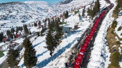 Trabzon’un Şalpazarı ilçesinde, Sarıkamış Harekatı'nın 110. yıl dönümü anısına düzenlenen anlamlı bir etkinlik gerçekleştirildi.2 bin 187 metreye yükselen Sis Dağı’nın zirvesinde, karlarla kaplı arazide 250 metre uzunluğundaki Türk bayrağı taşınarak Sarıkamış şehitleri anıldı. Etkinlik, katılımcılara duygu dolu anlar yaşattı.Yoğun Katılım ve Duygusal Anlar